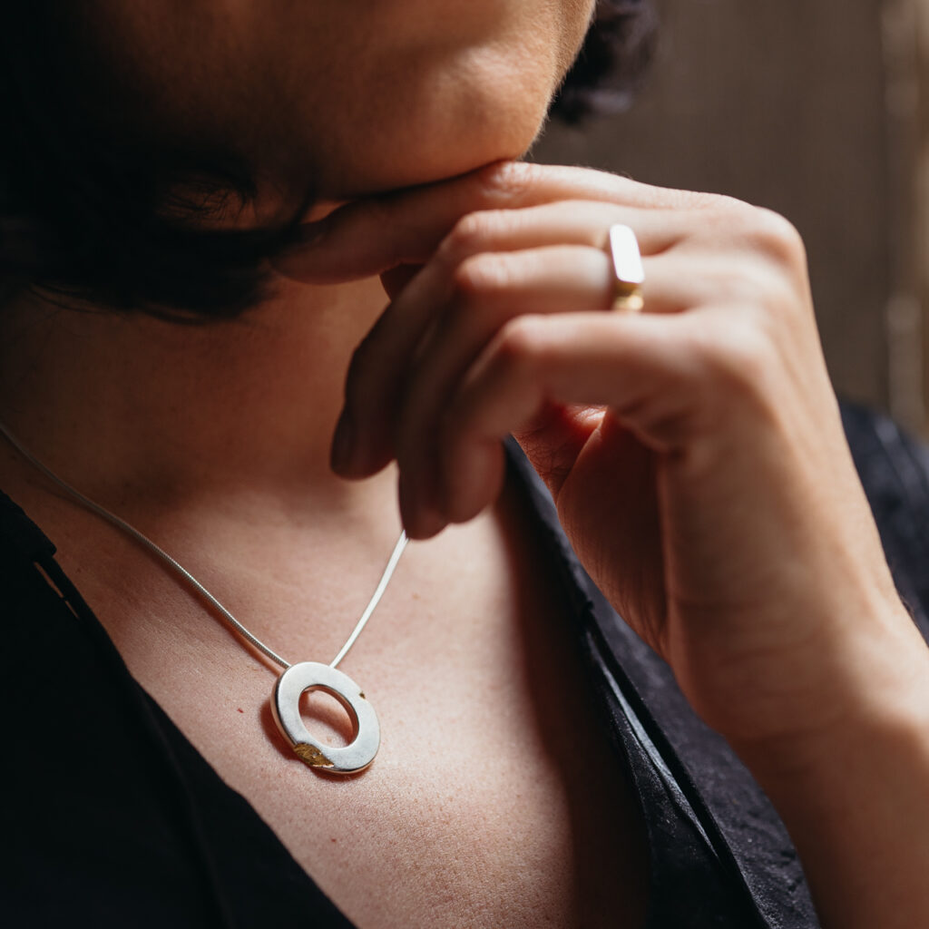 A Hiány nevet viselő gyűrűt – melyből a minikollekció kinőtt – egy ilyen, személyes megtapasztalás ihlette: édesapám elvesztése, mely után sem szüleink, sem nagyszüleink nem maradtak. A kiszakított darab helyén egy apró gyémánt fénye emlékeztet arra, hogy minden okkal történik és minden történés egy lehetőség a fejlődésre.