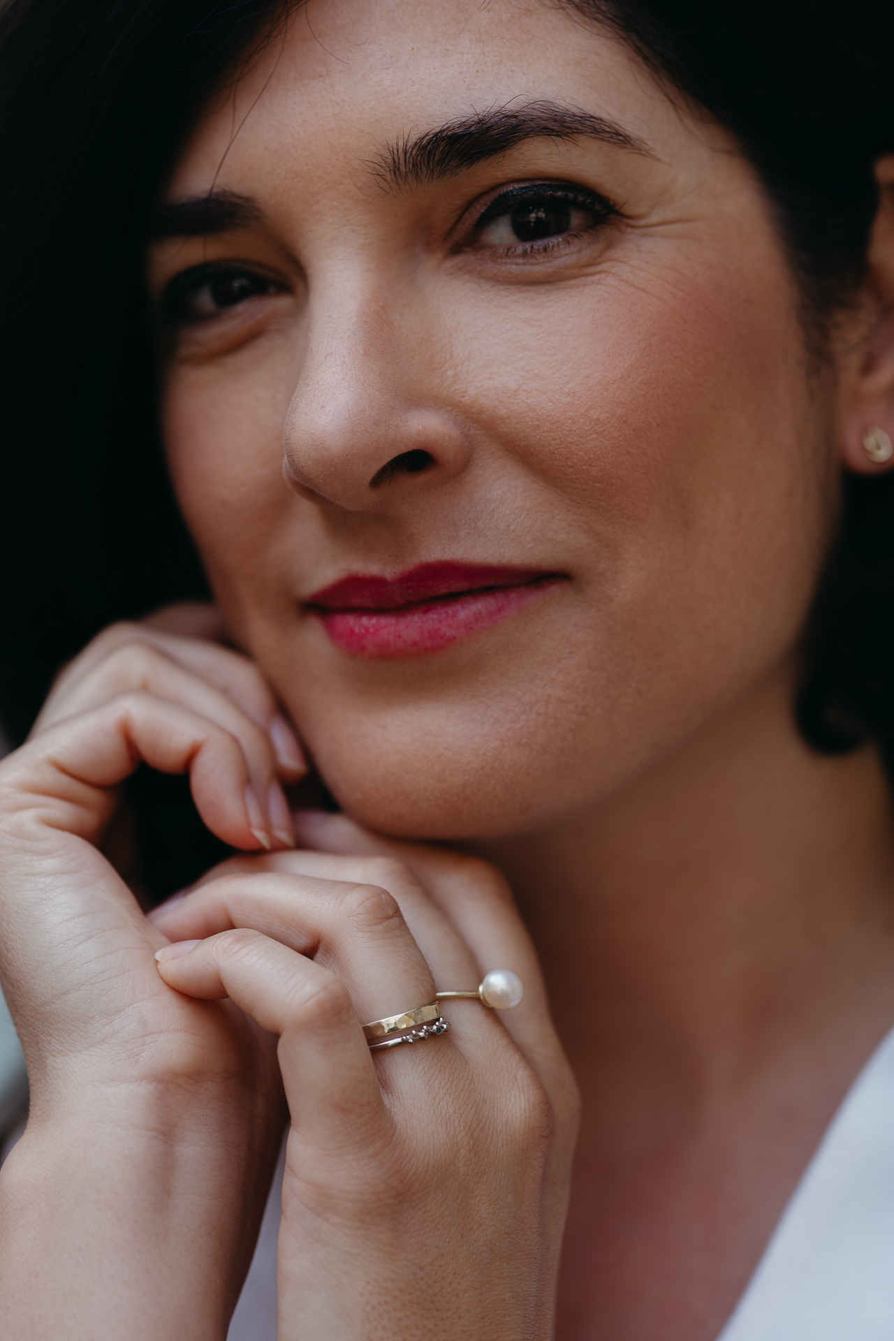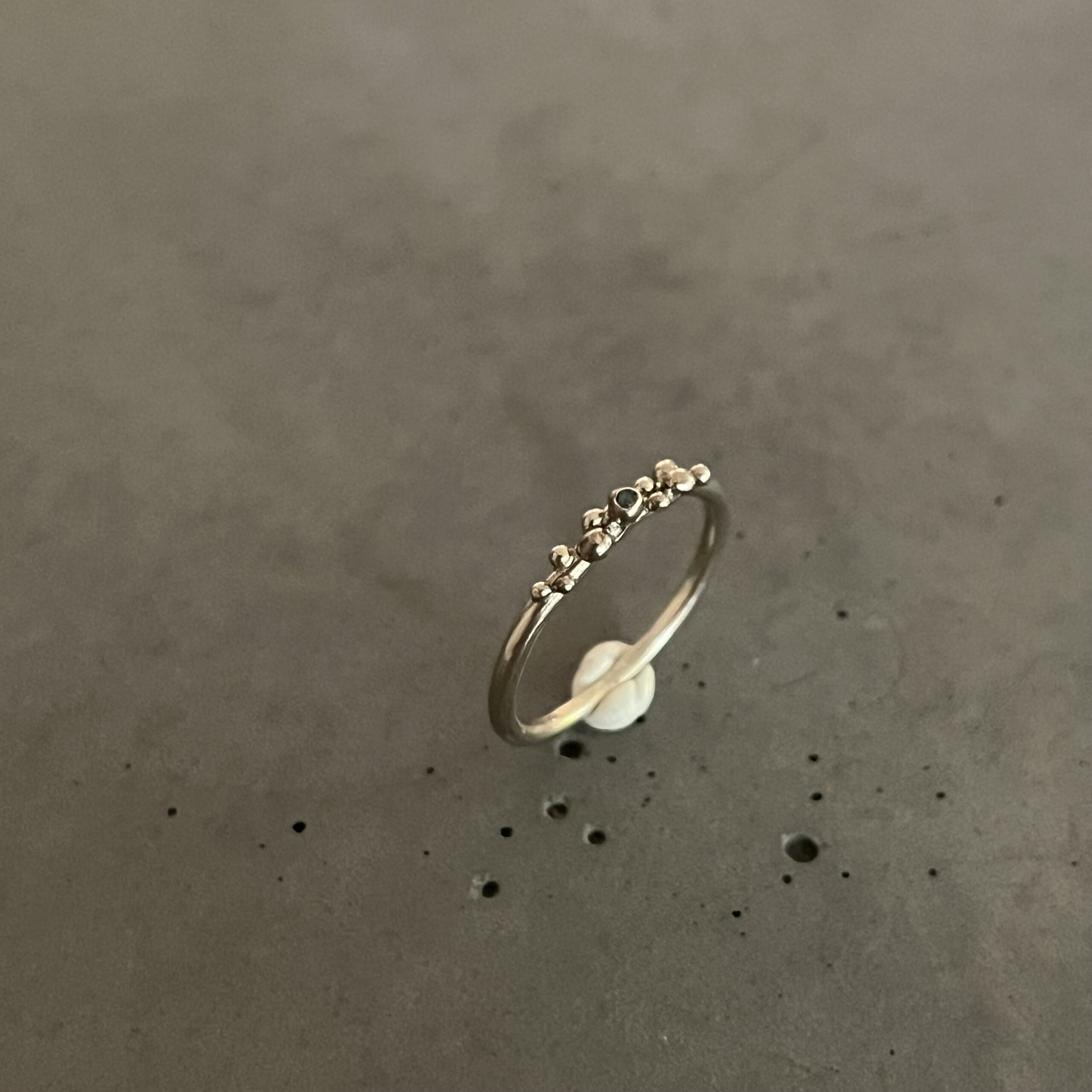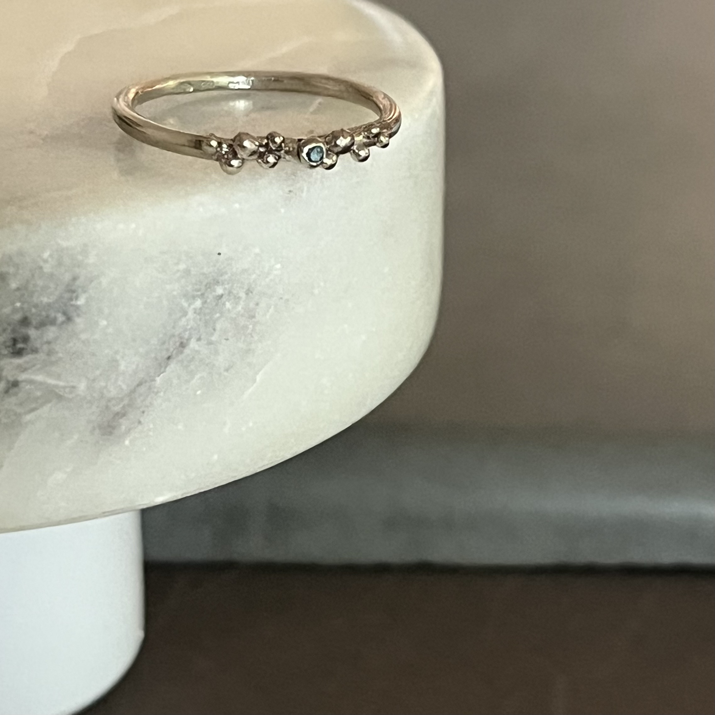 An extravagant yet wearable everyday rustic berry ring with a tiny blue diamond.