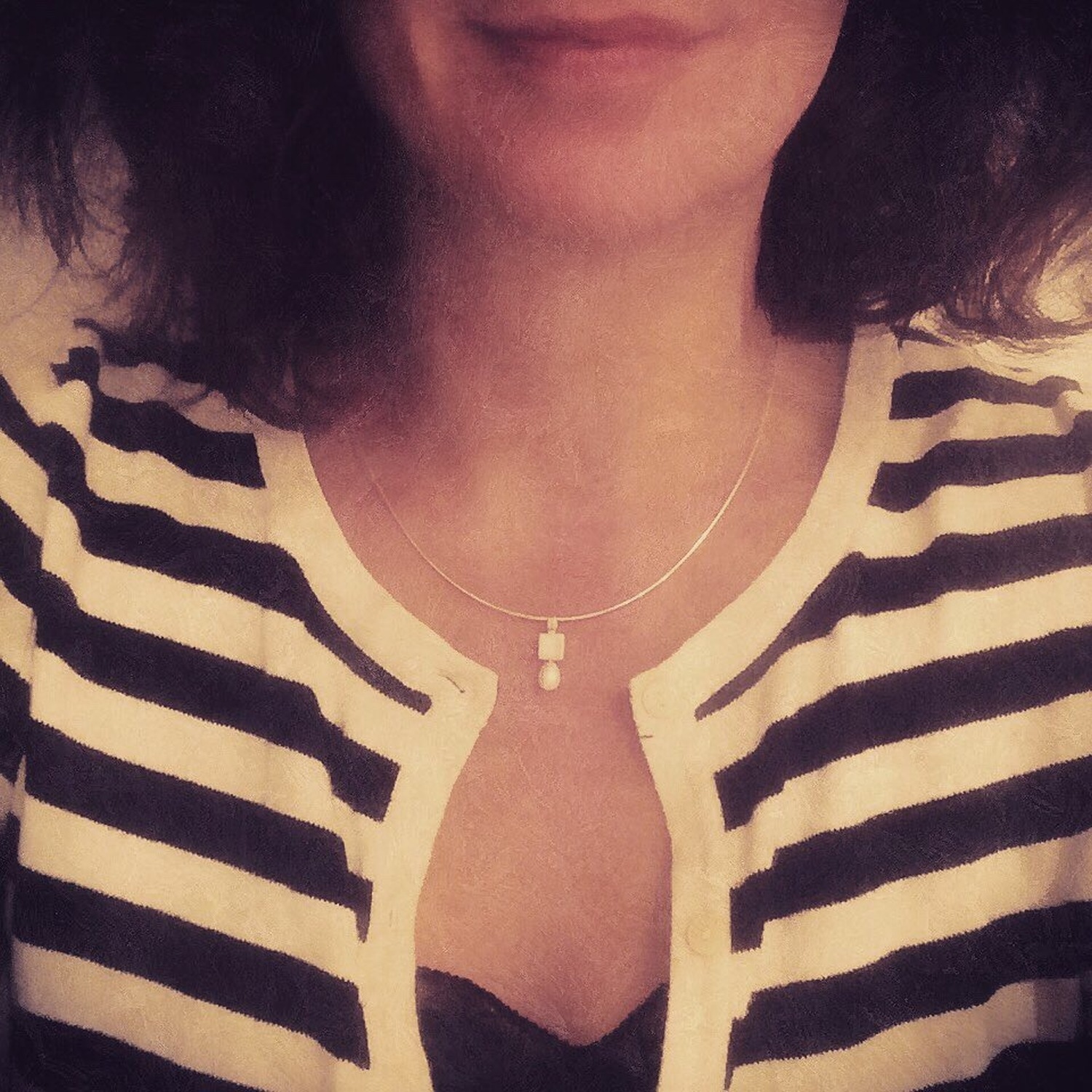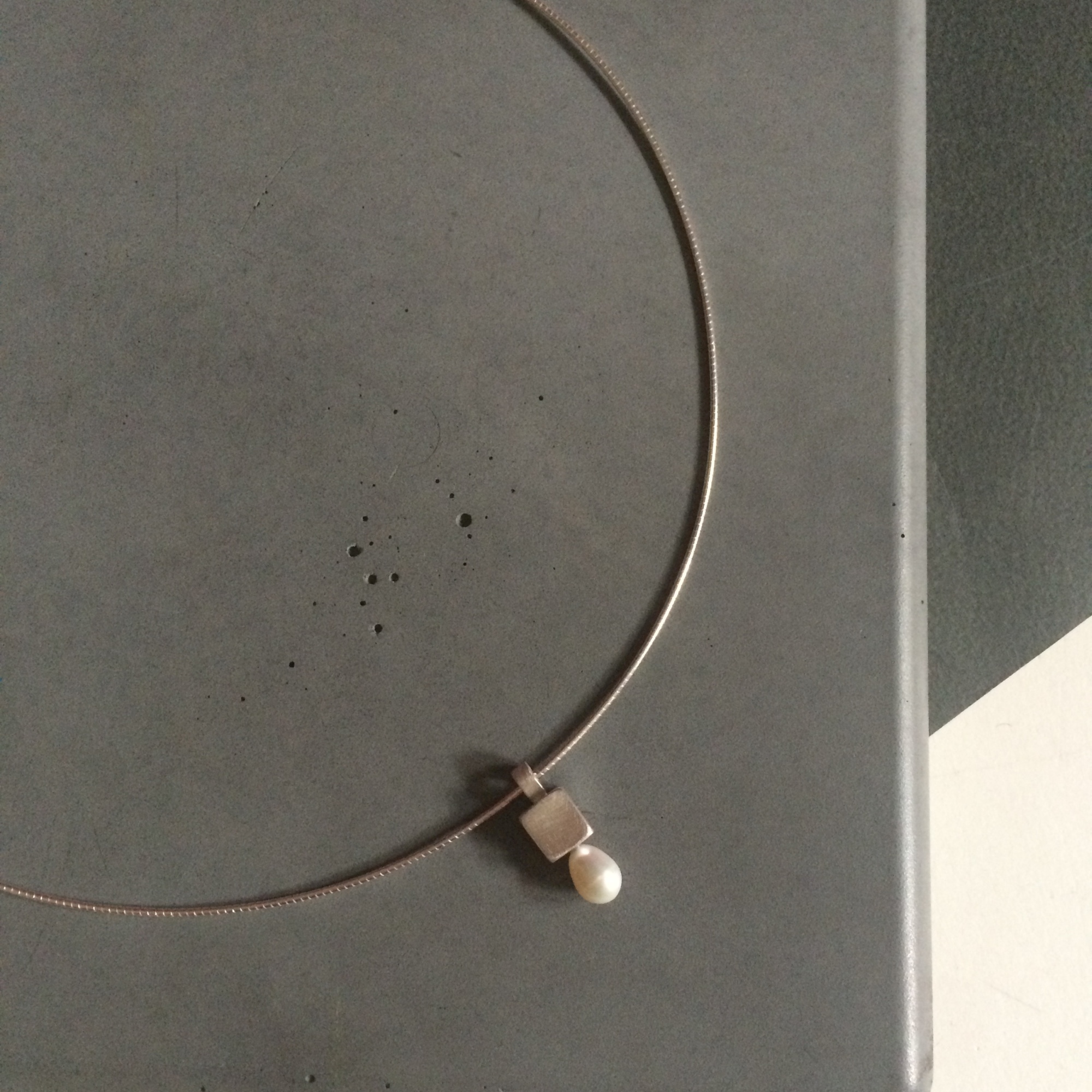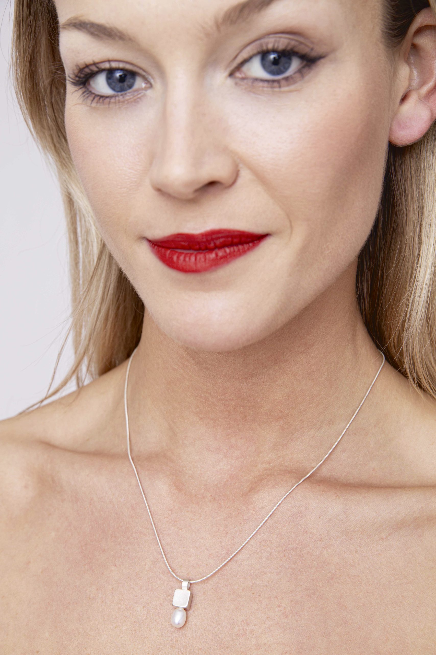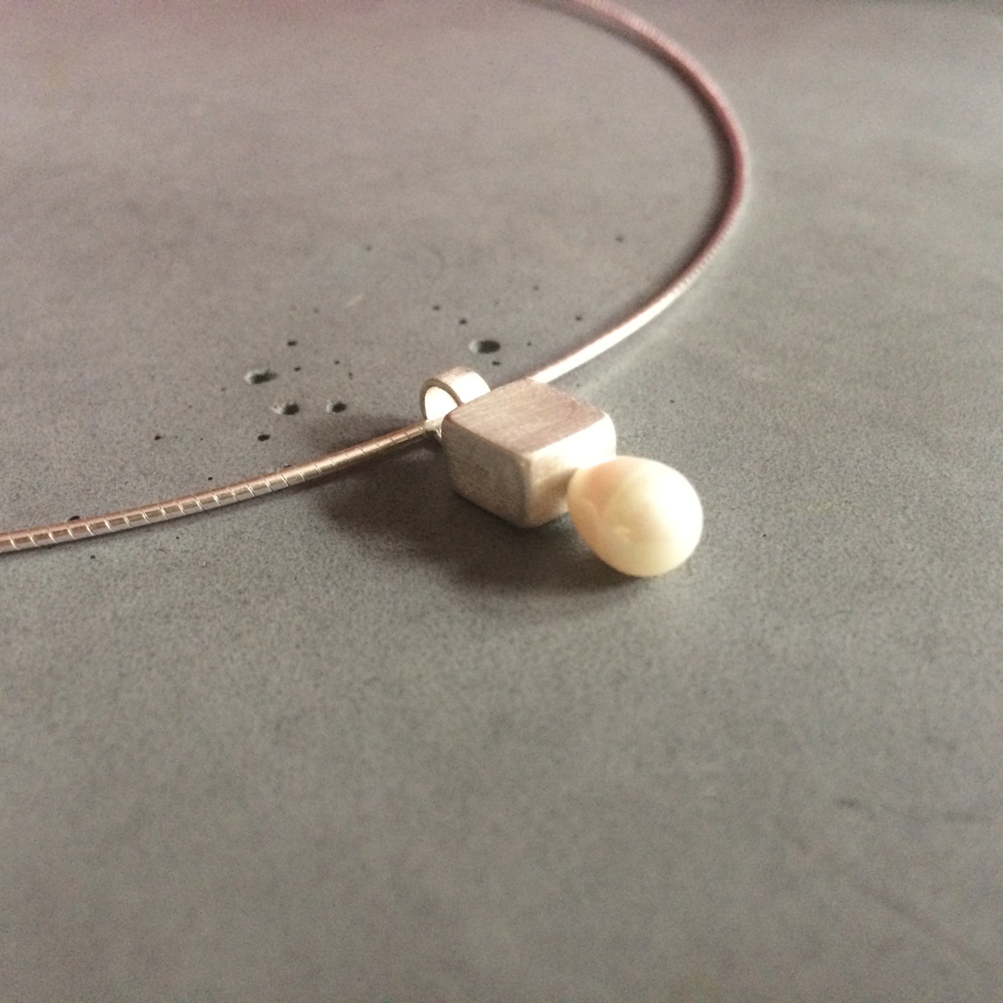 A delicate and minimalist necklace for everyday wear. A cube-shaped pendant with a white pearl, made from 925 sterling silver.