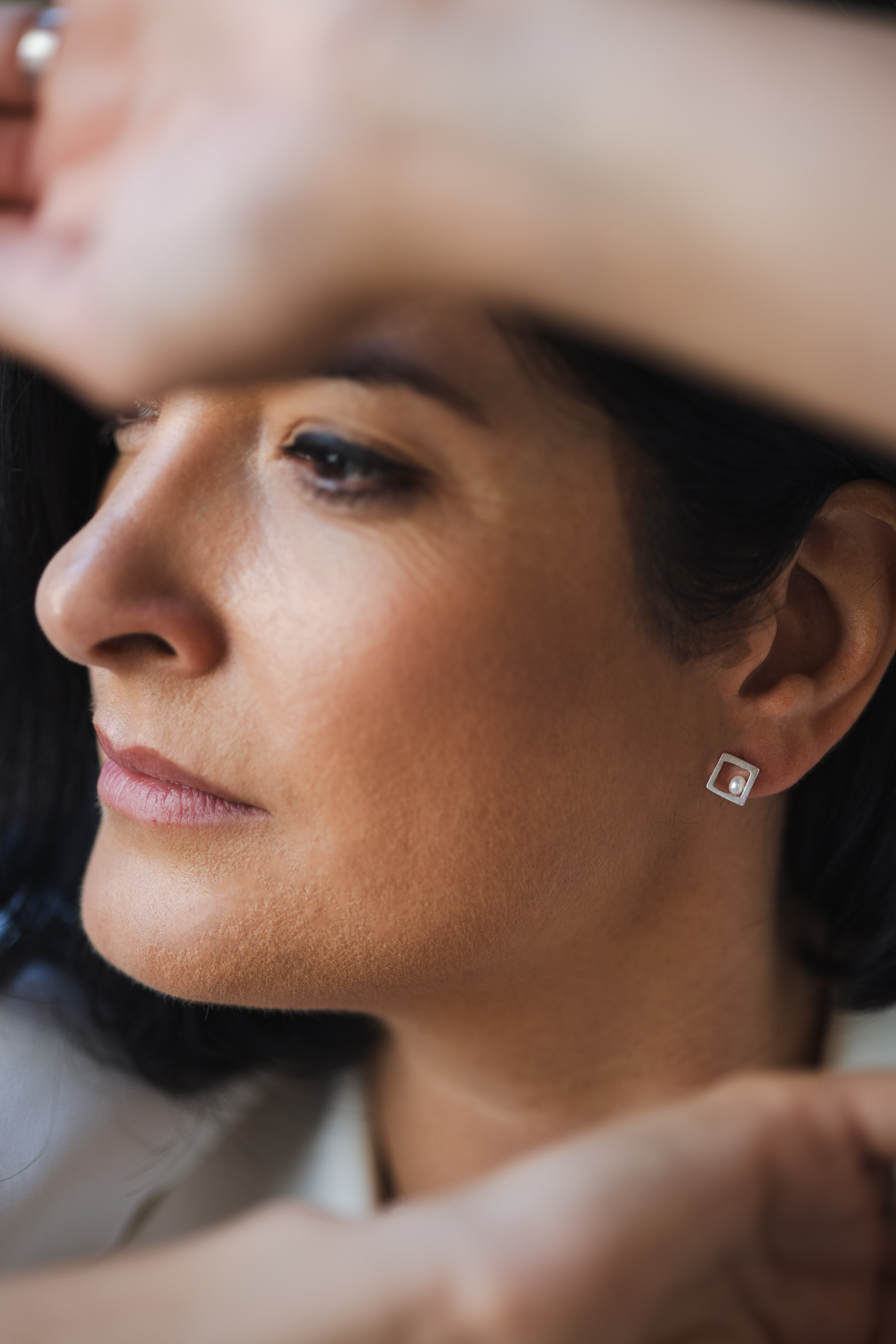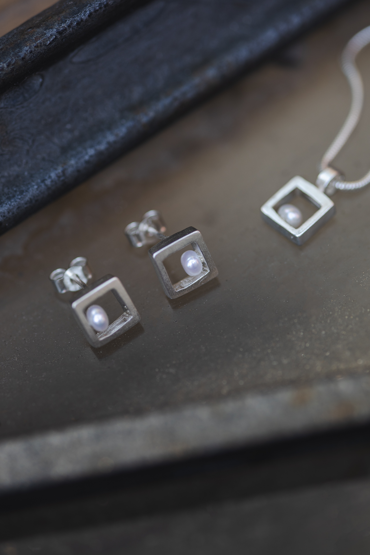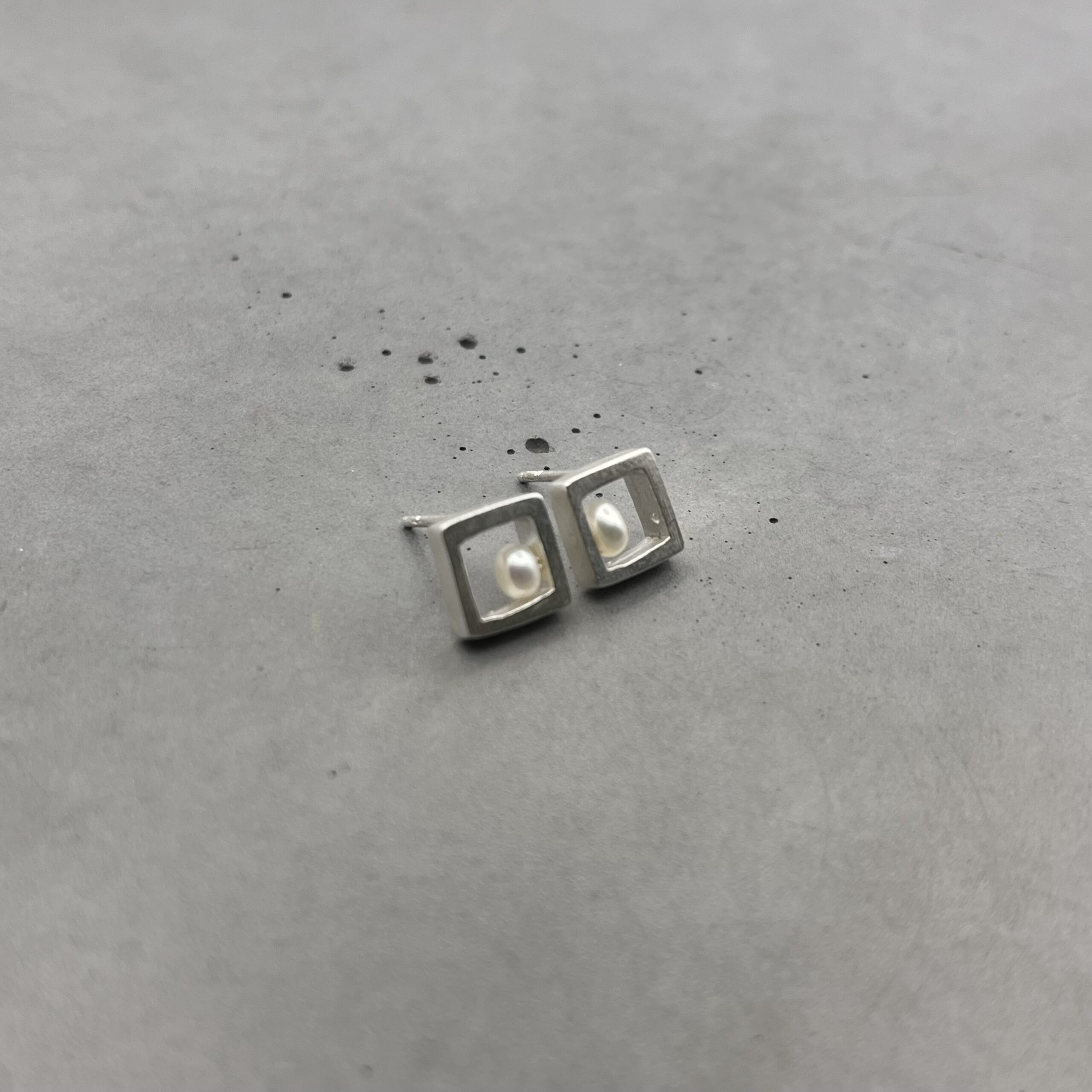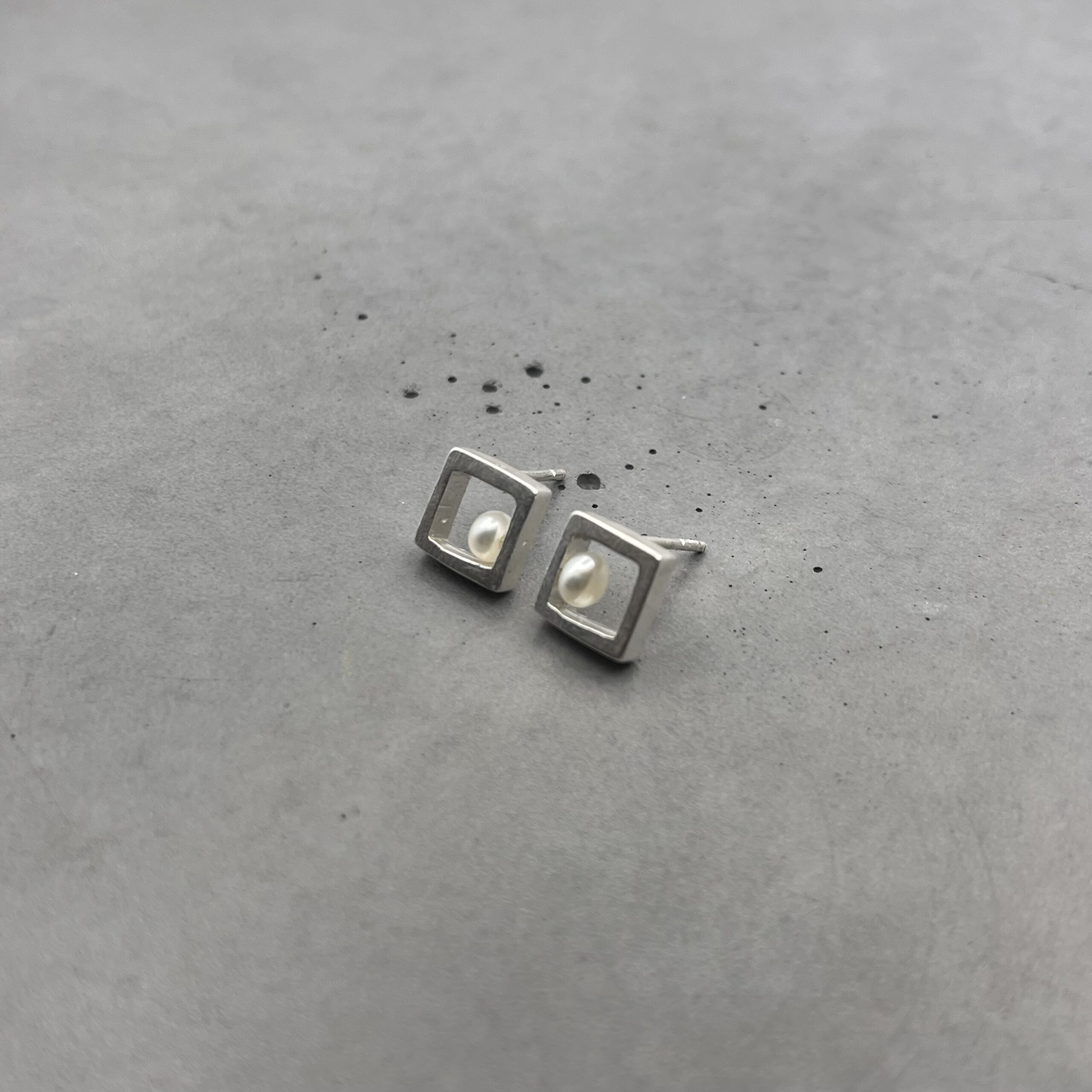 Cube Silver Earrings with Pearl – INDUSTREAL Collection – designer jewelry – MADE TO ORDER INDUSTREAL Collection