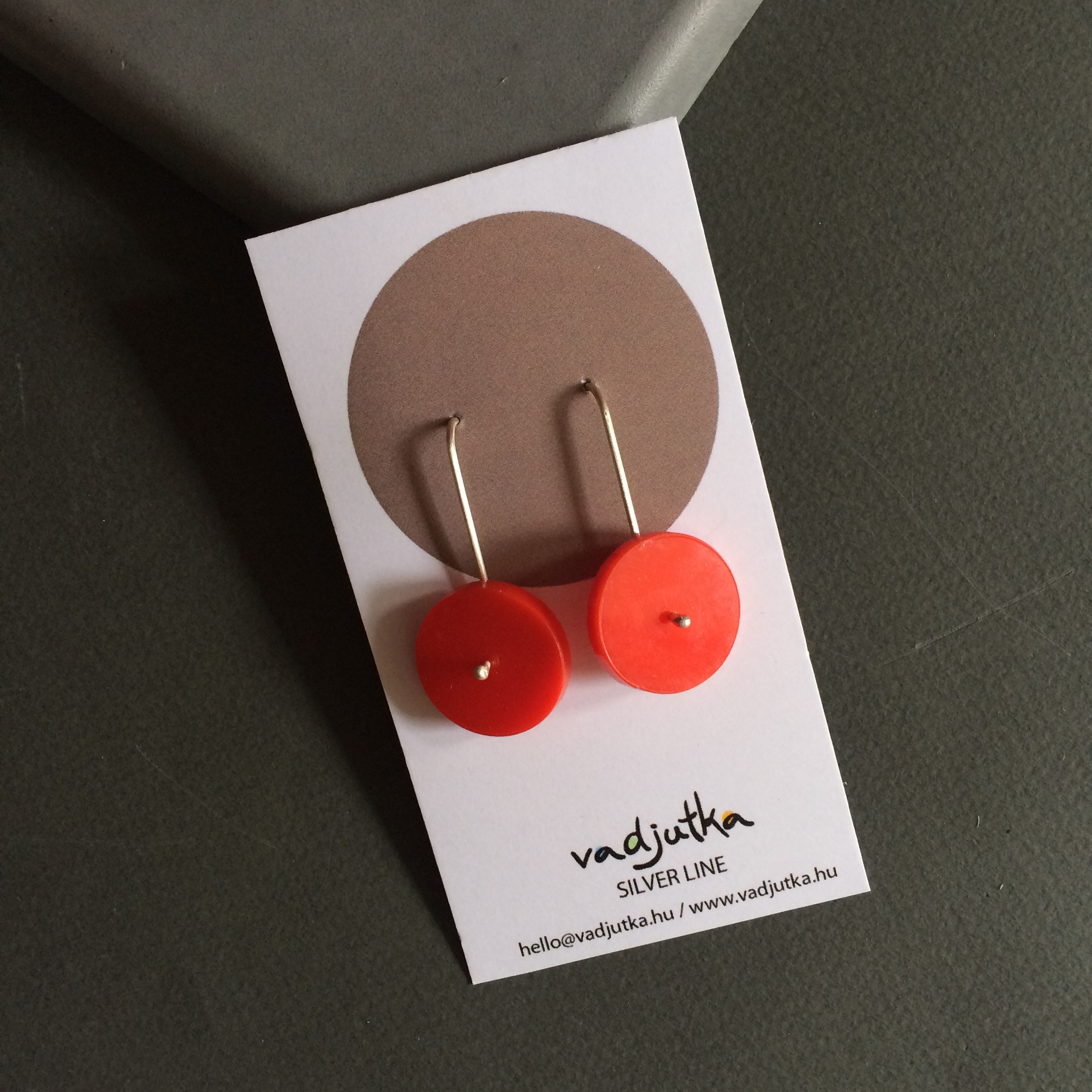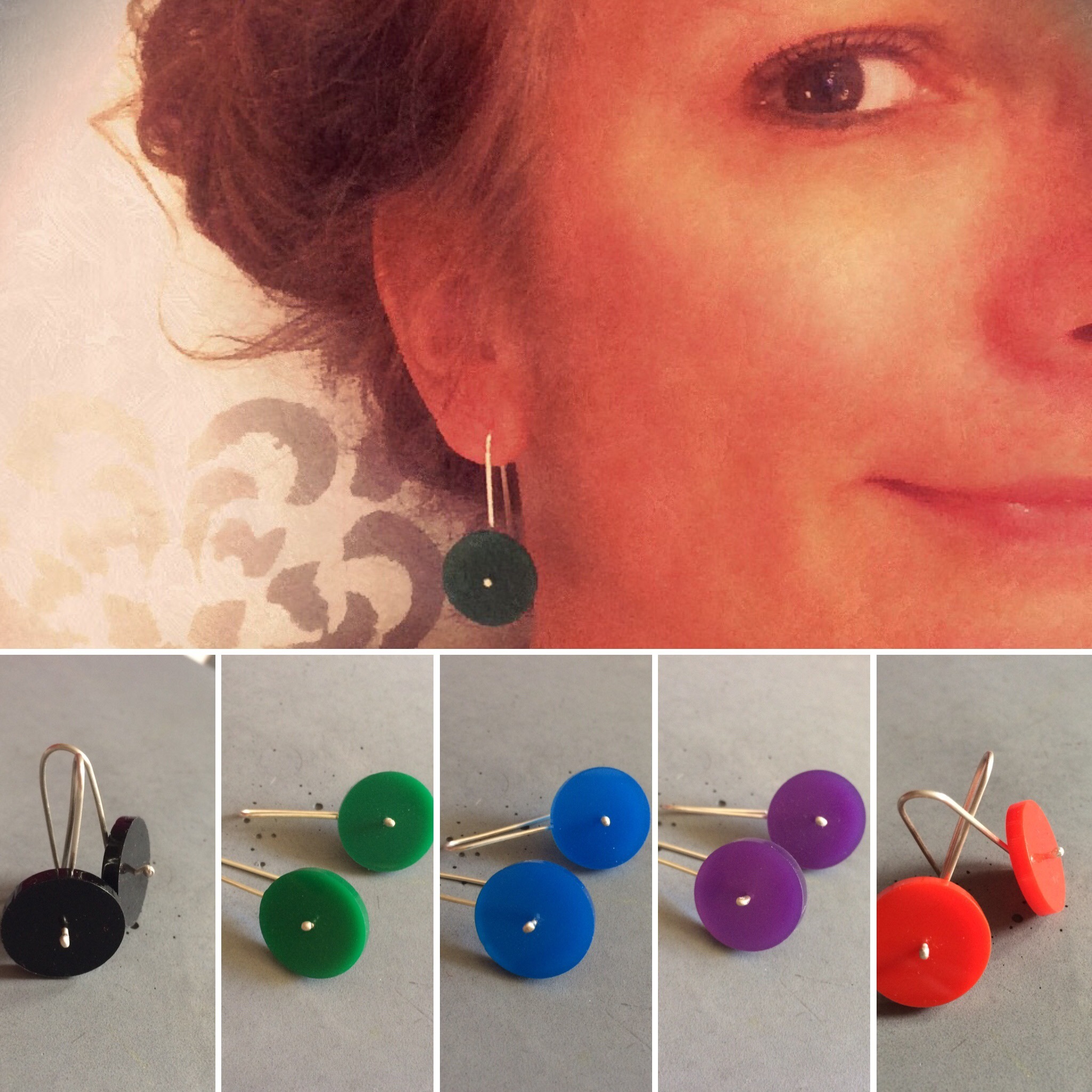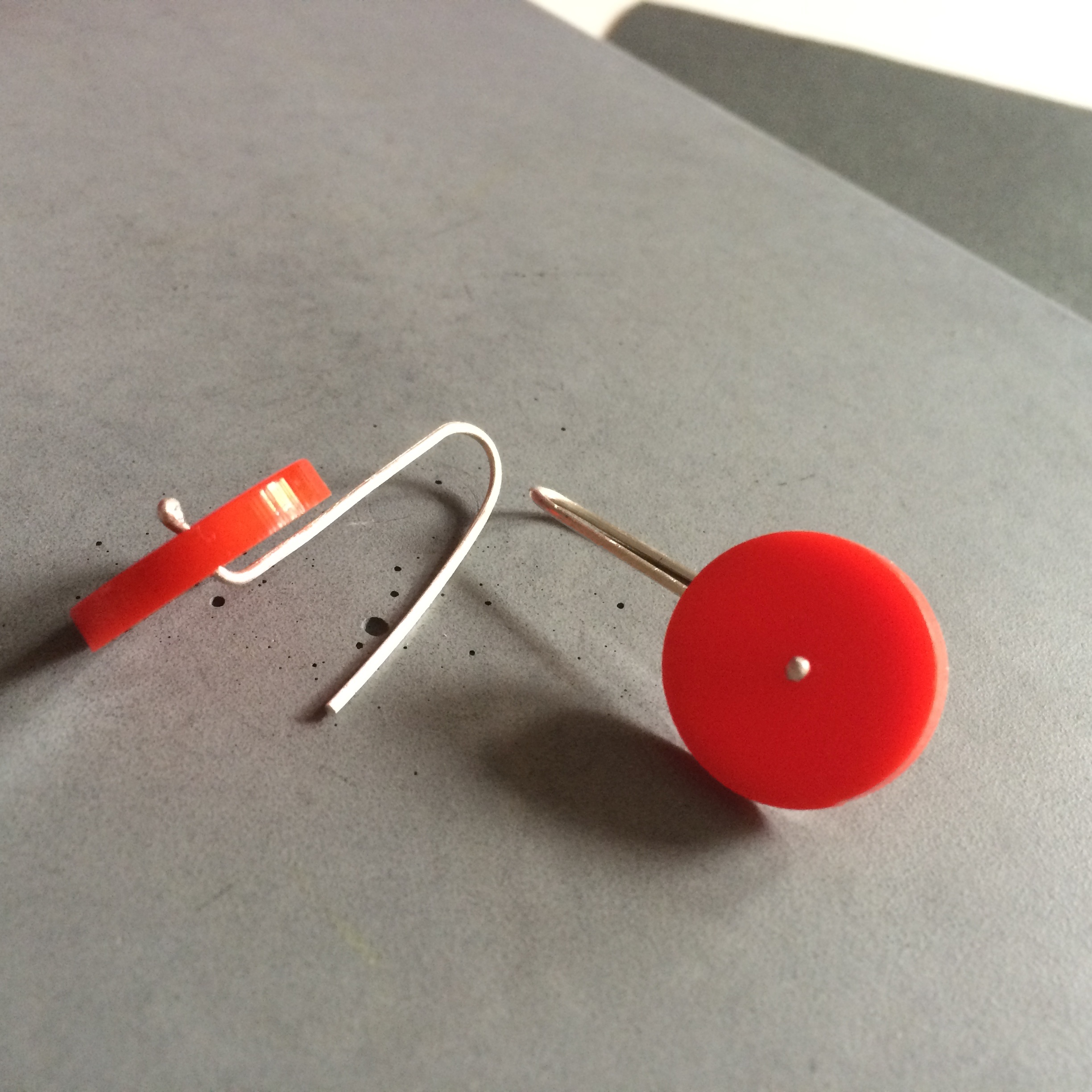 This earring, made of 925 sterling silver wire and complemented by a red plexiglass circle, is both simple and striking — the perfect addition to any wardrobe.