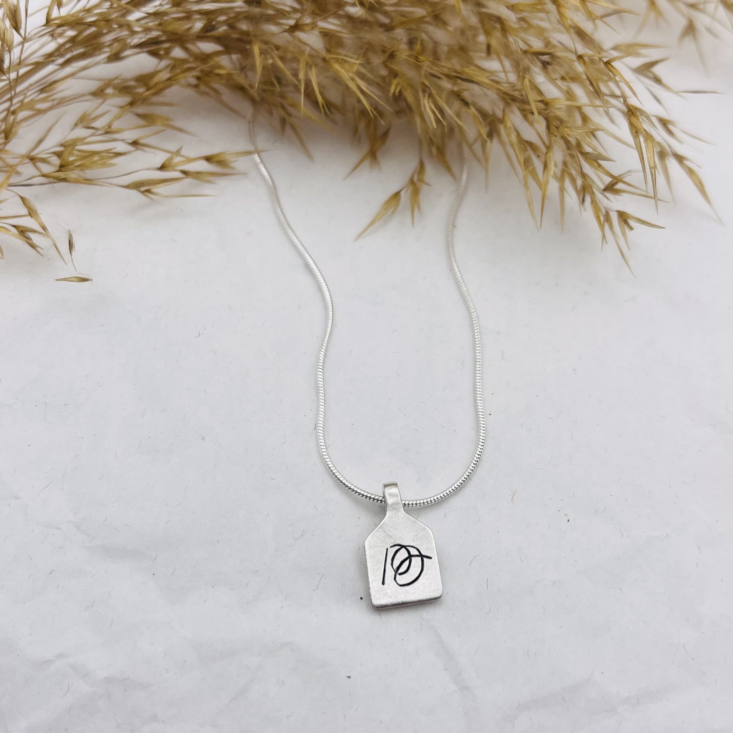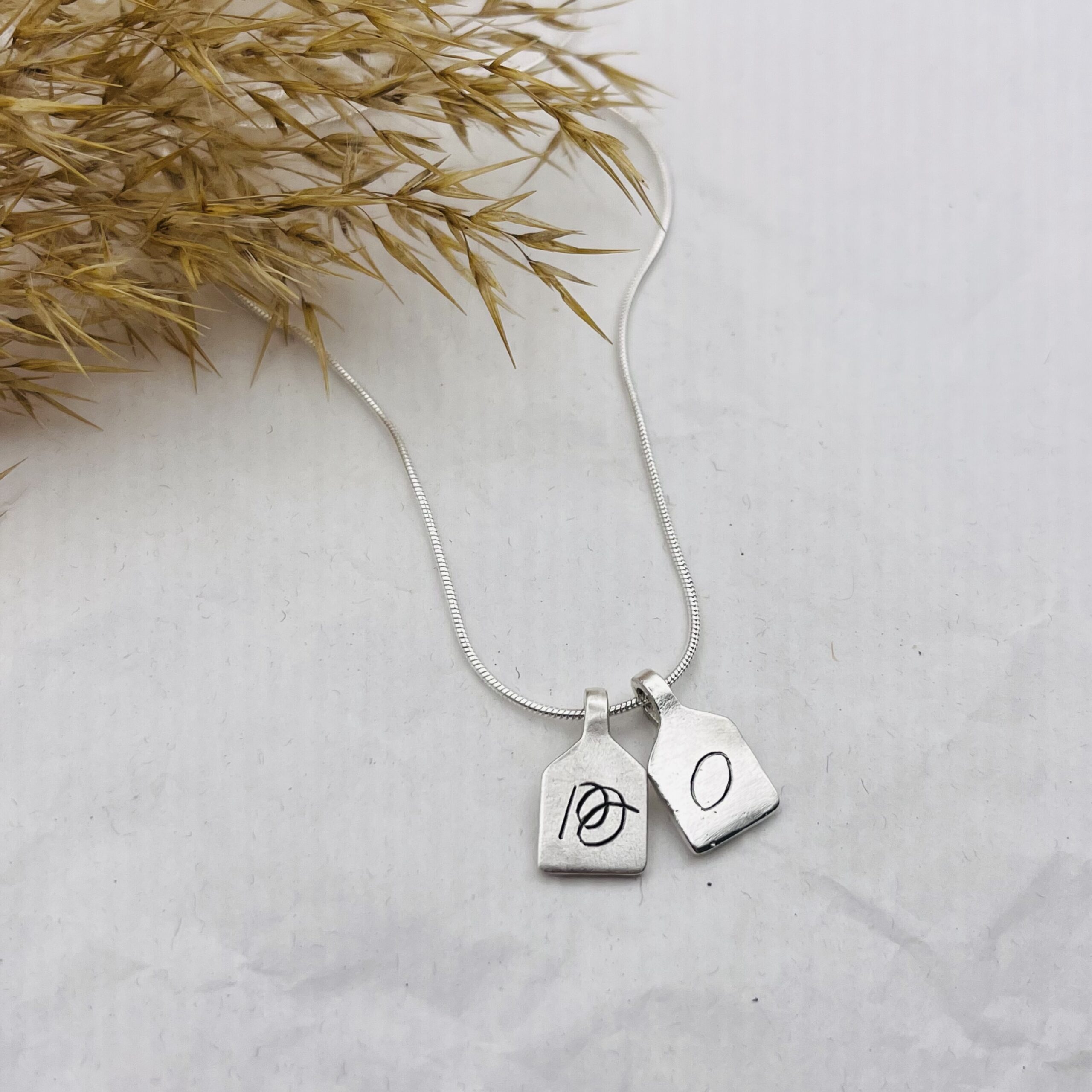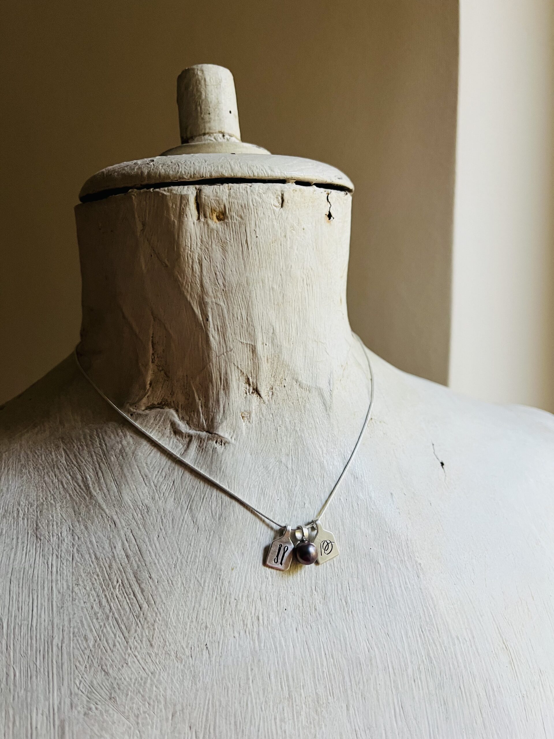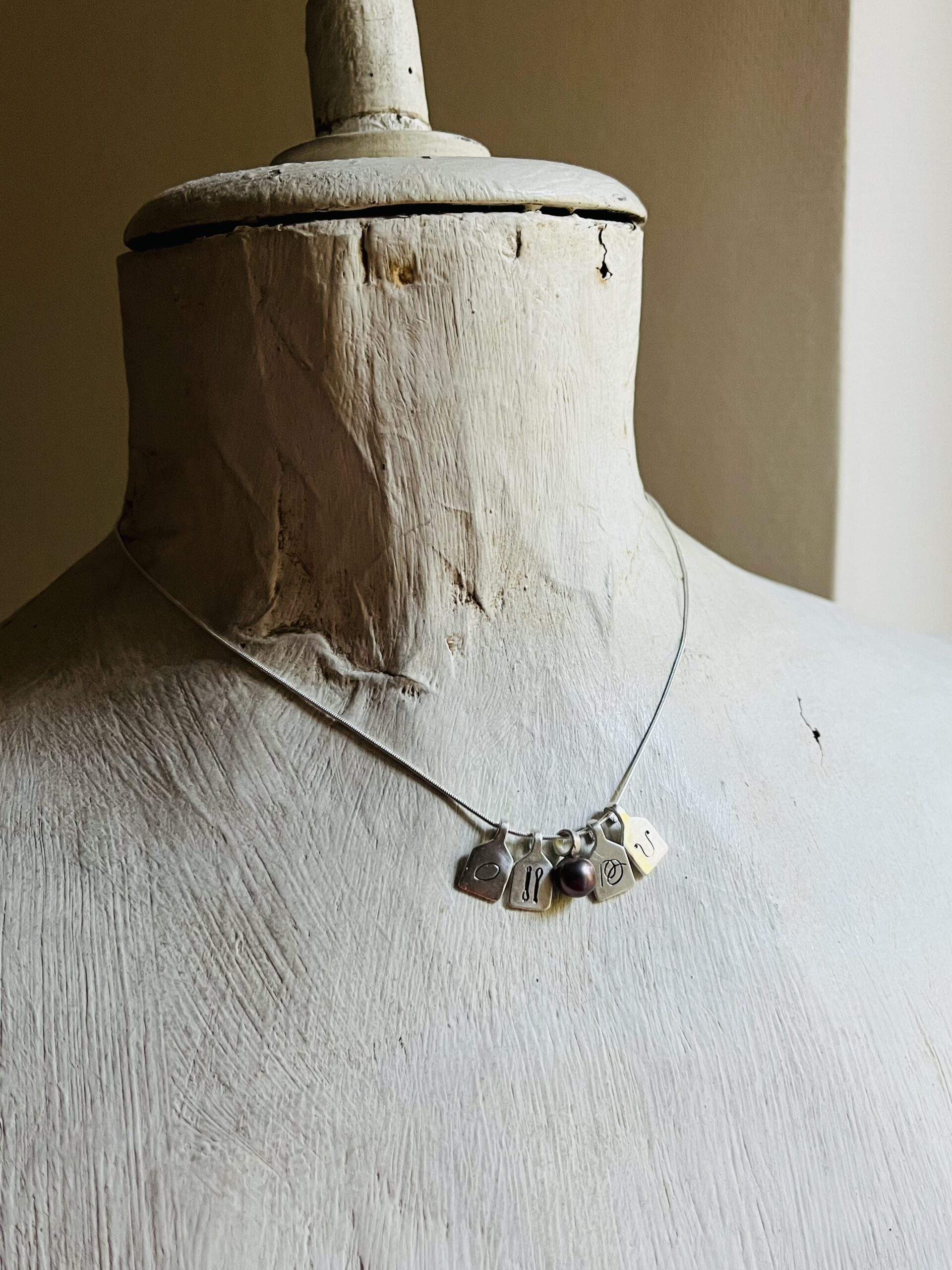 This customizable necklace is made of tiny 925 sterling silver “scoreboard” pendants and freshwater pearls.