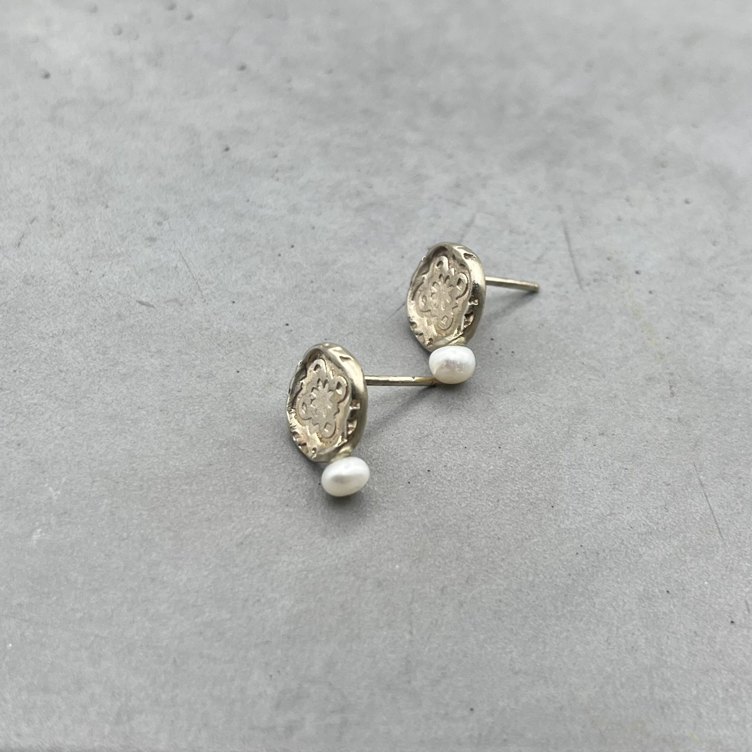 These earrings are made of 585 (14-karat) white gold, and are also available in yellow or rose gold, adorned with a small white freshwater pearl.