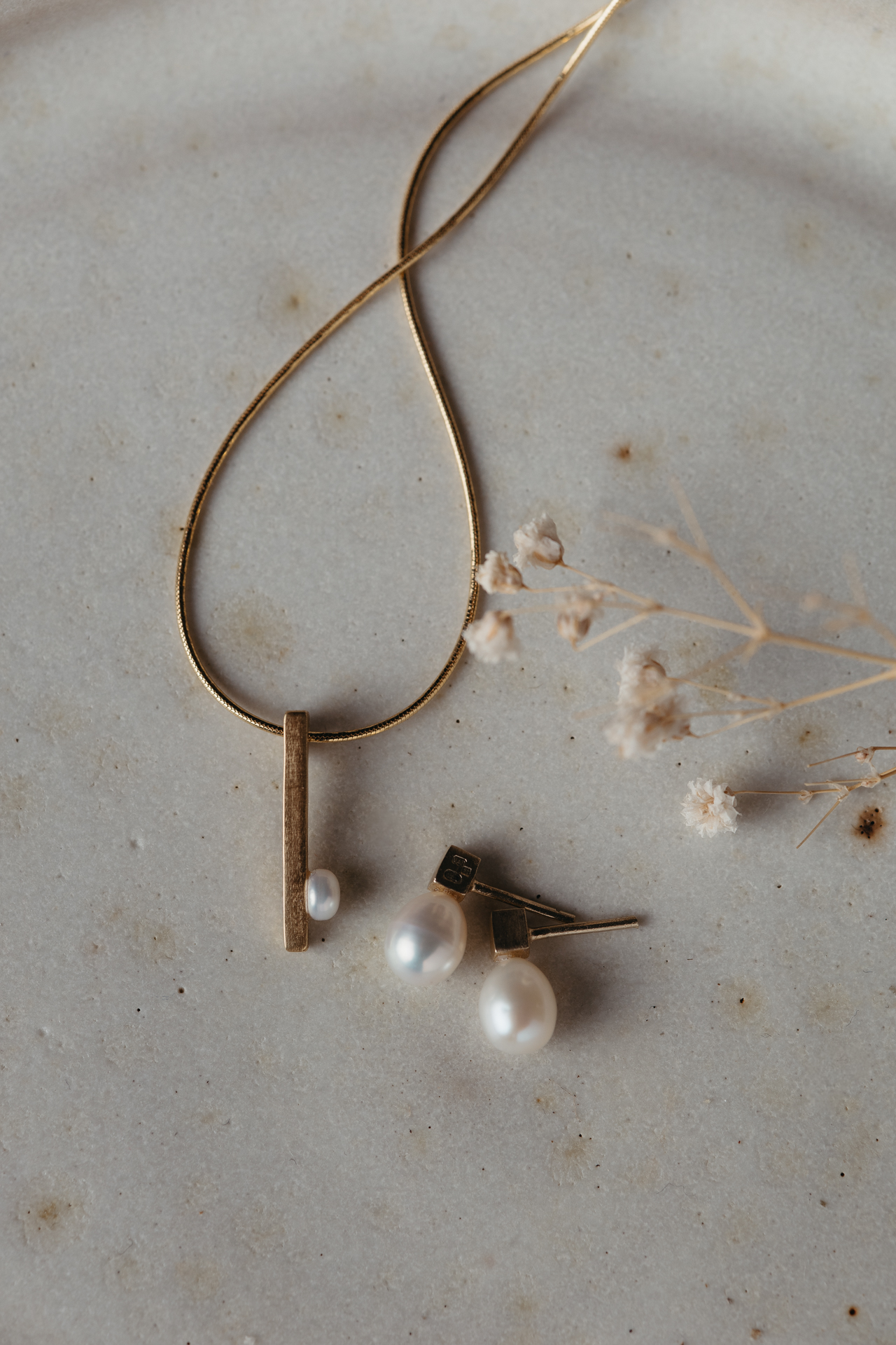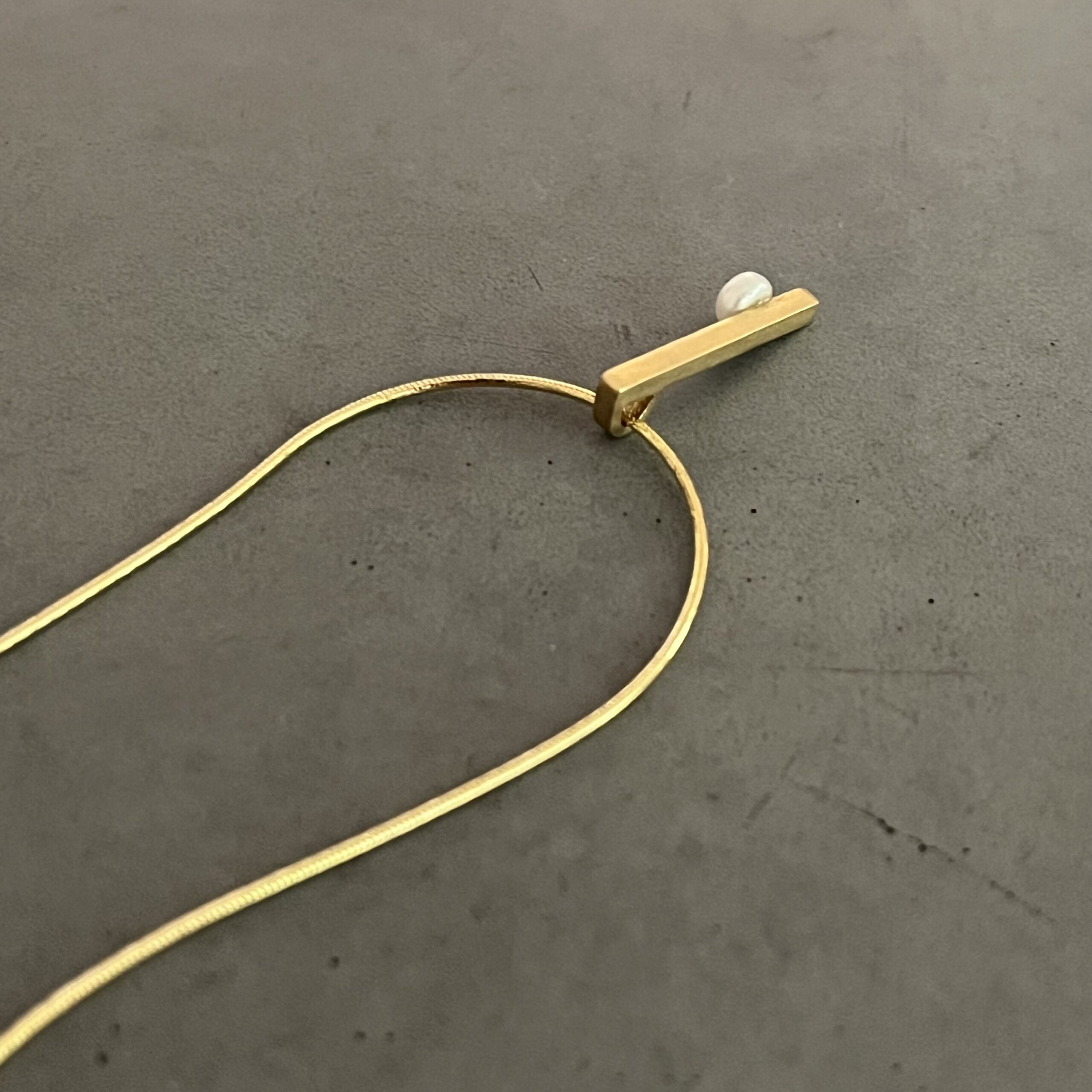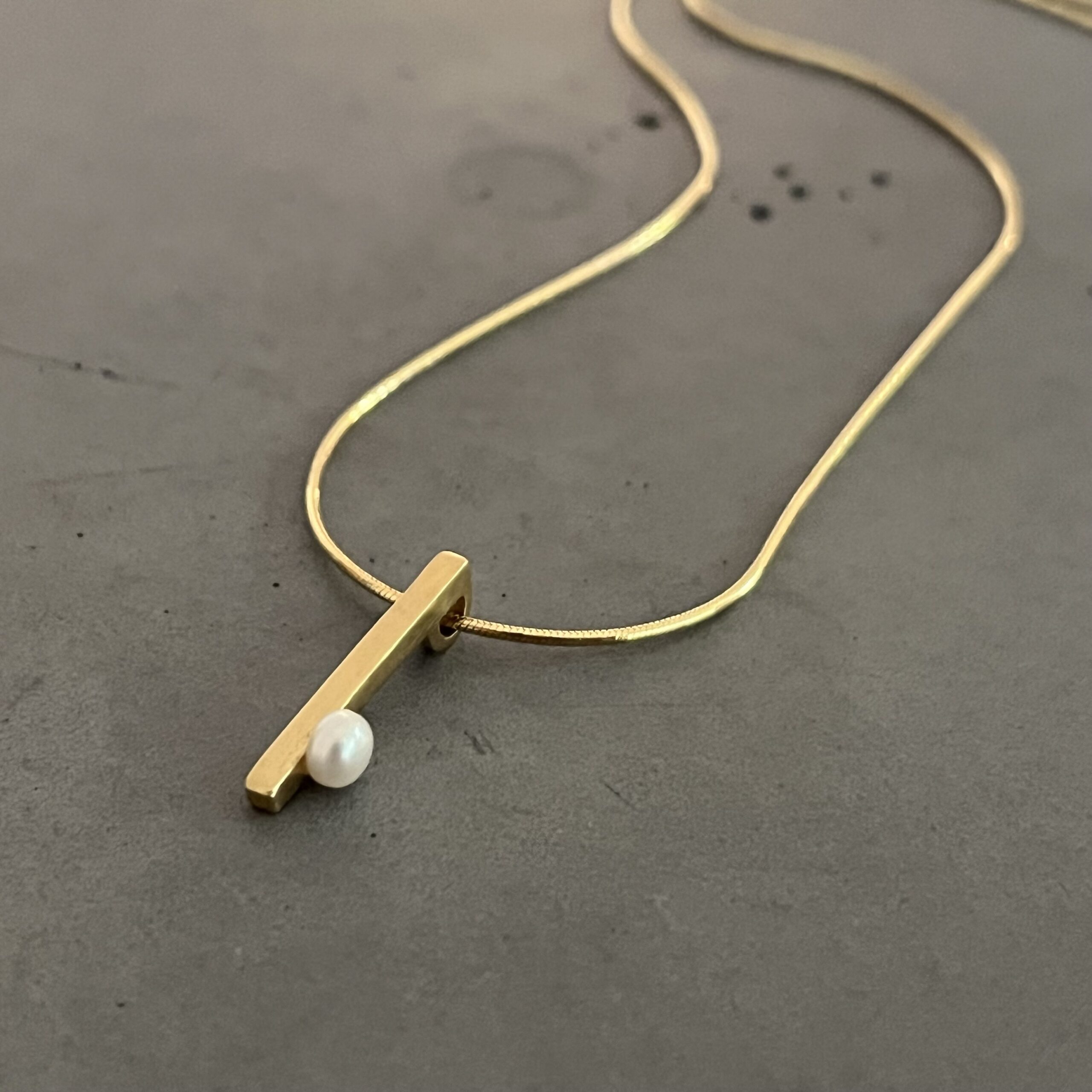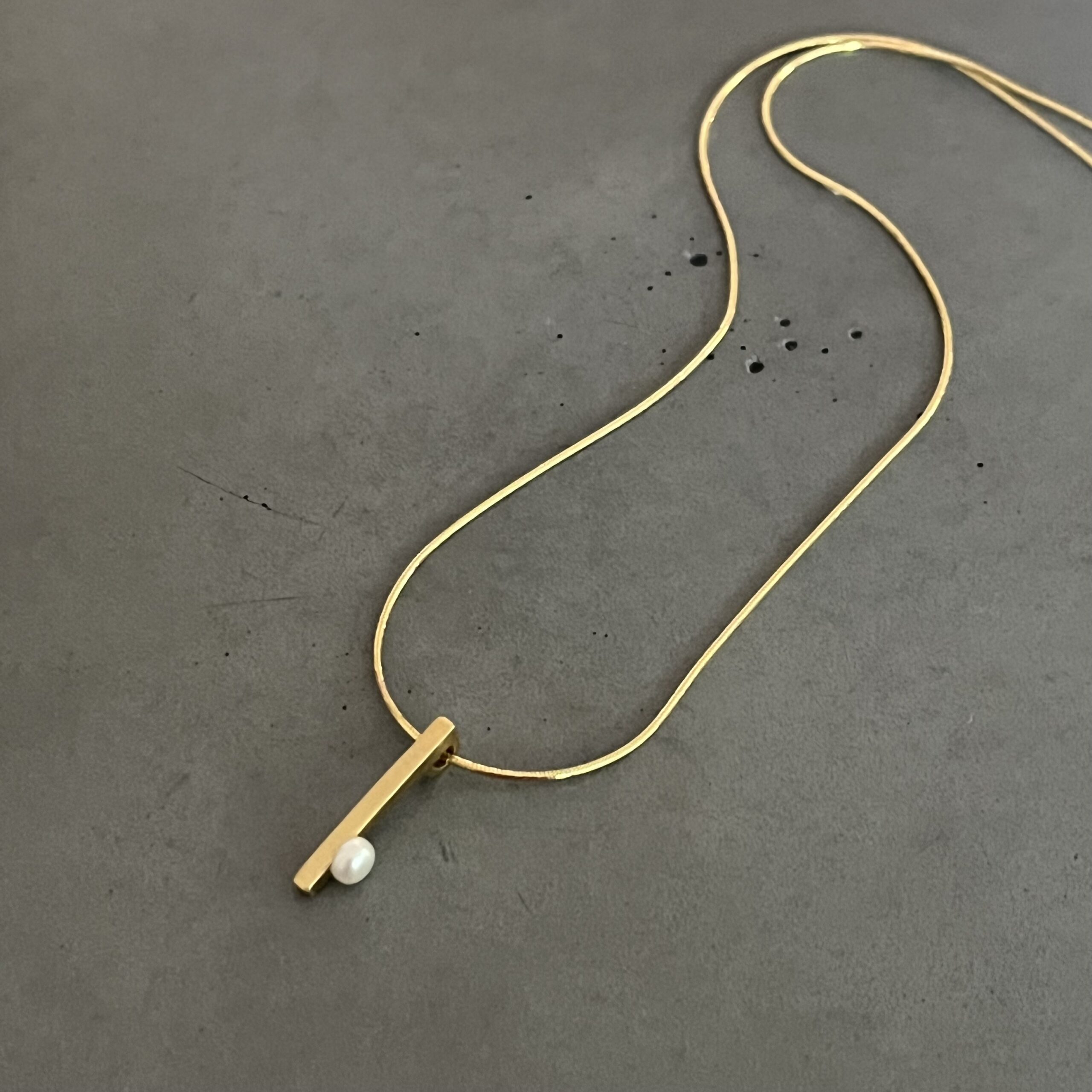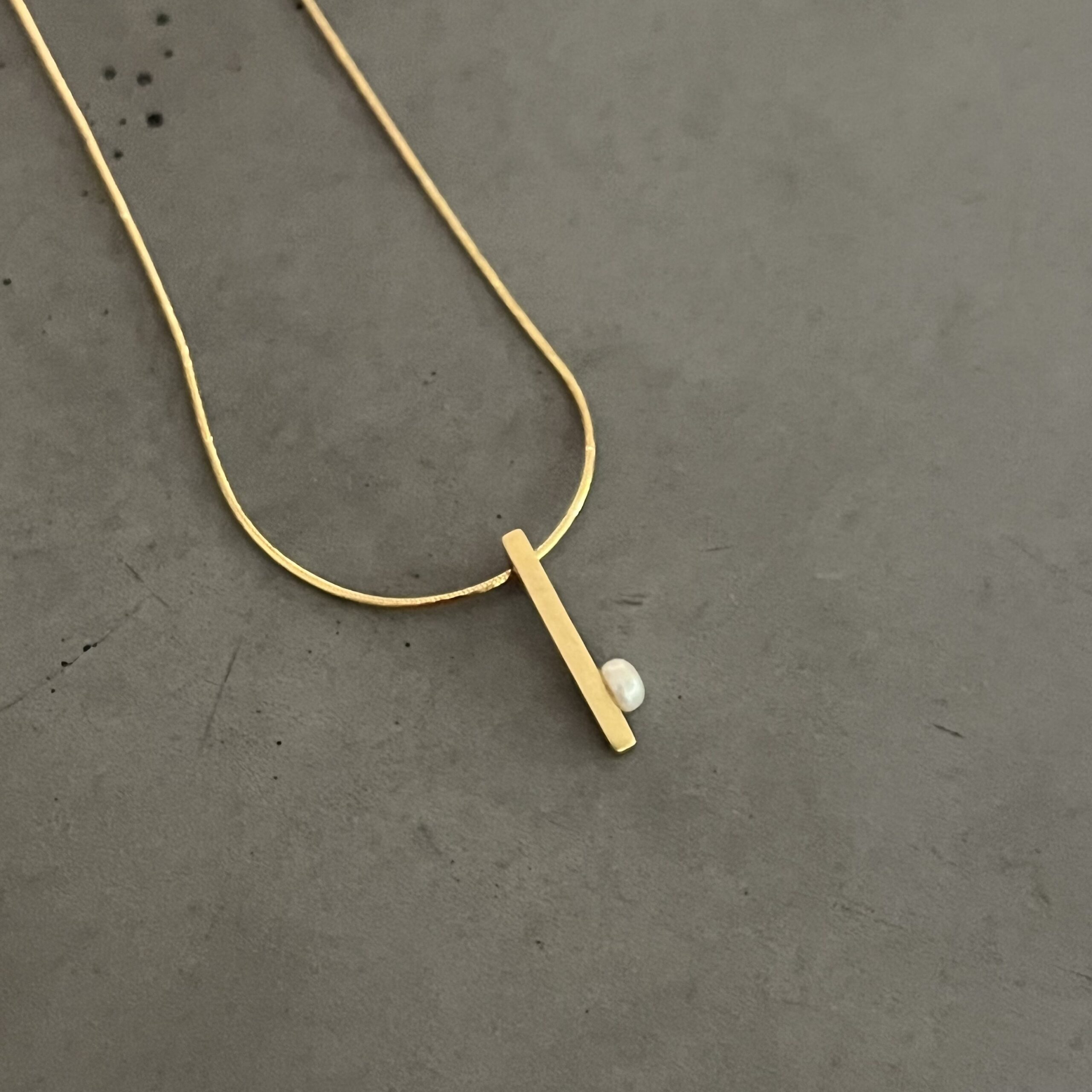 Stripe and pearl – tiny gold minimalist pendant with white freshwater pearl – designer jewelry – MADE TO ORDER