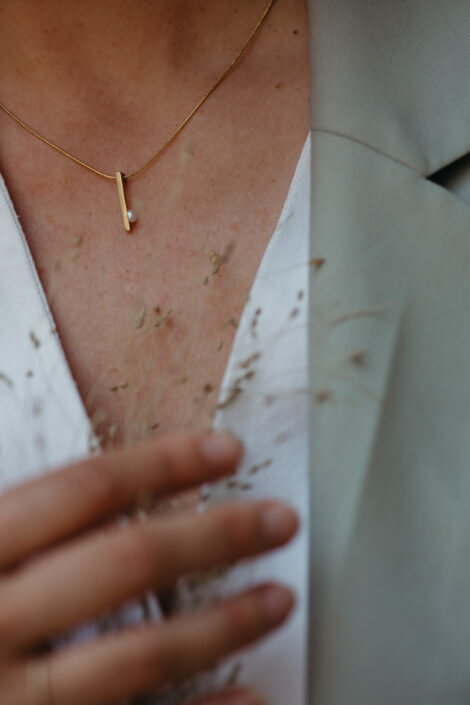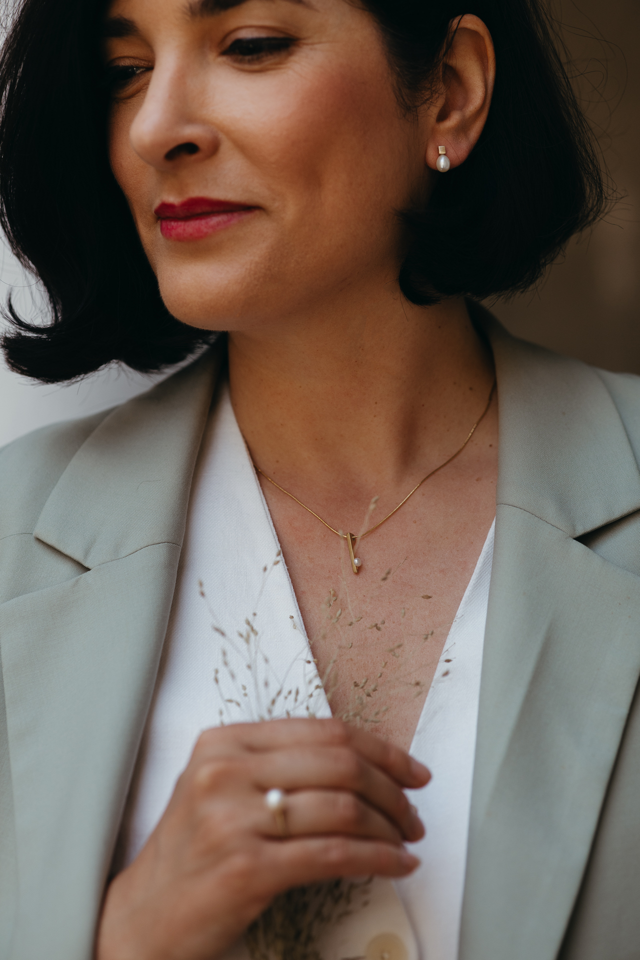 You can’t go wrong with this minimalist and classic tiny strip and pearl necklace: it goes perfectly with any dress, top, or shirt.